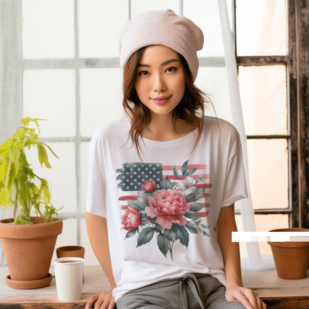 Peonies Floral Flag 4th of July Patriotic TShirt