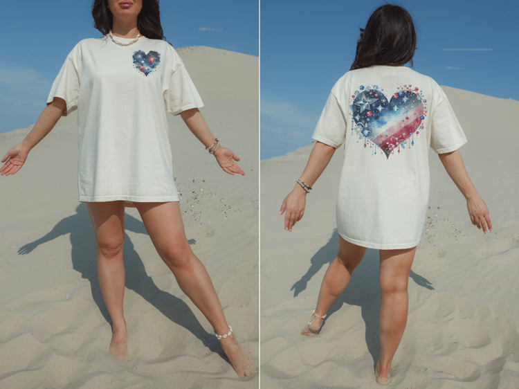 Patriotic Glam Heart Rhinestone 4th of July Flag TShirt