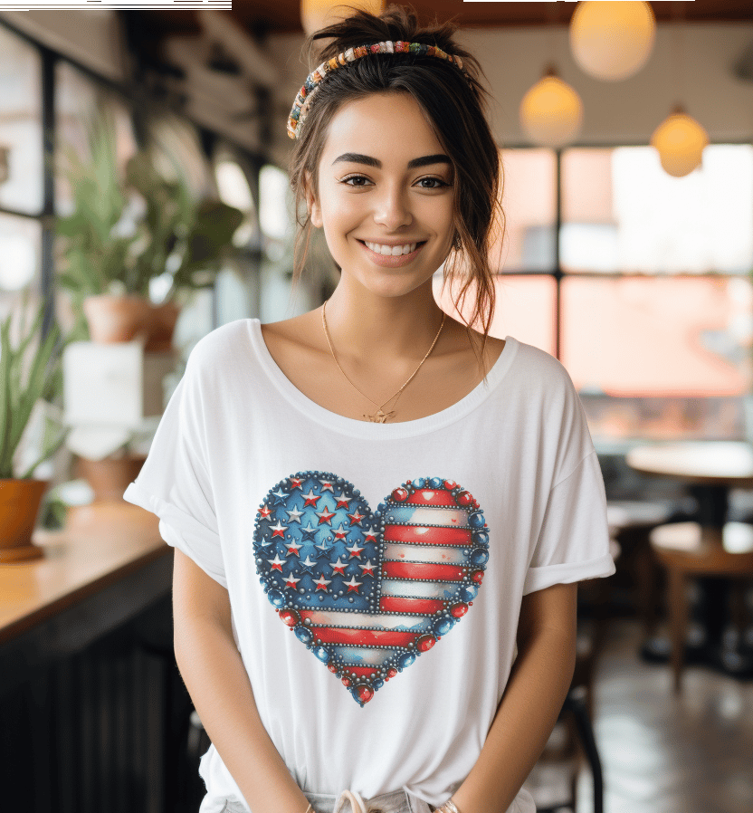 Studded Heart Patriotic 4th of July Flag TShirt