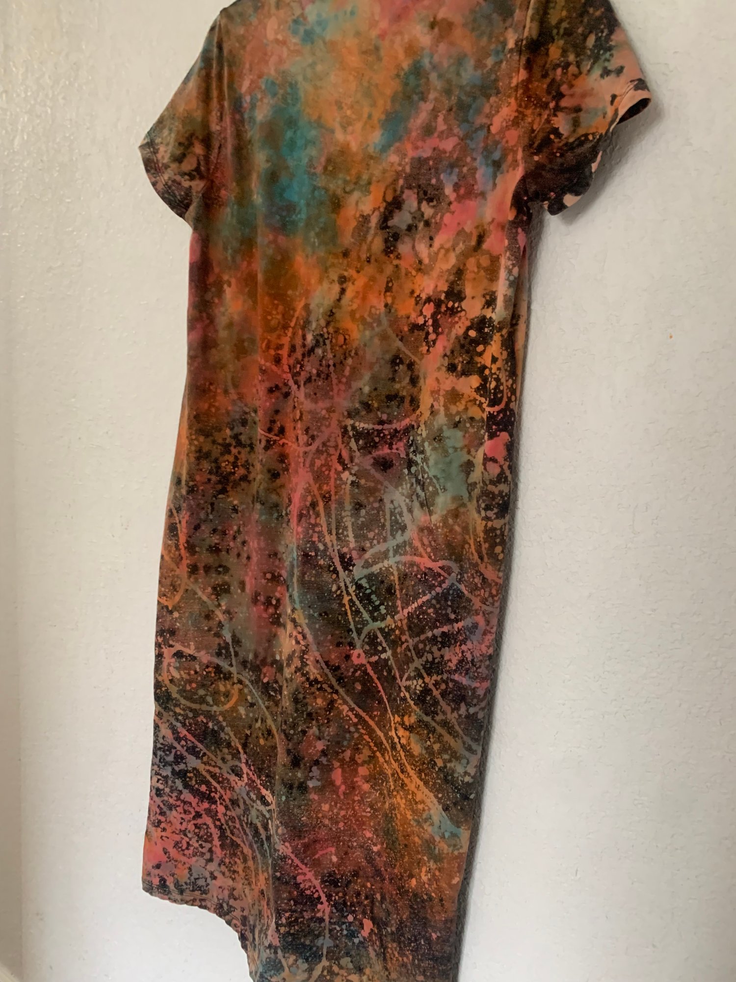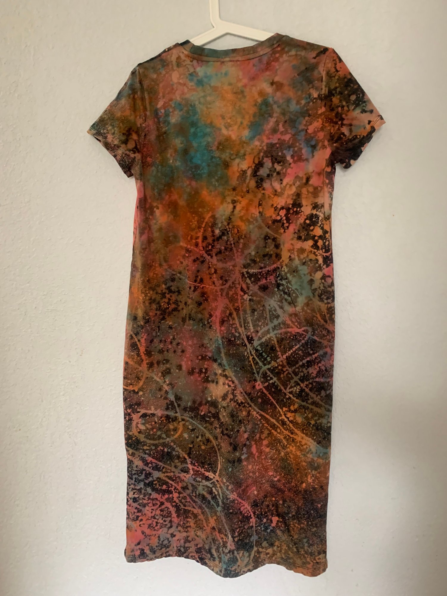 Reverse dyed women's tshirt dress in the color play design, Size M. Price includes shipping in the USA.