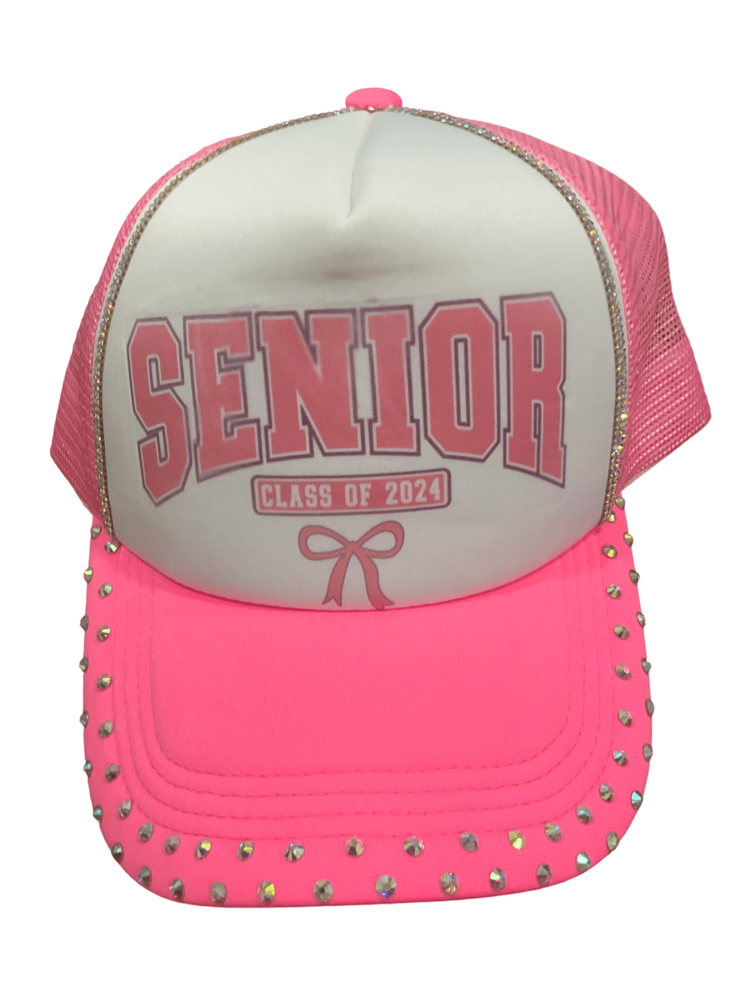 Rhinestone Senior 2025 Graduation Coquette Trucker Hat
