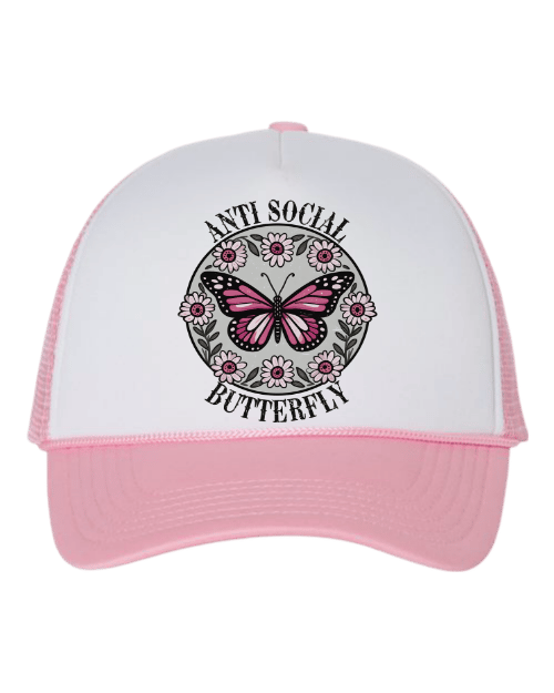 Pink Anti Social Butterfly Mental Health Trucker Hat