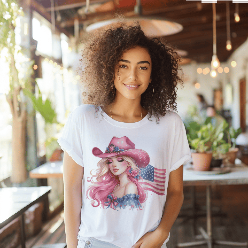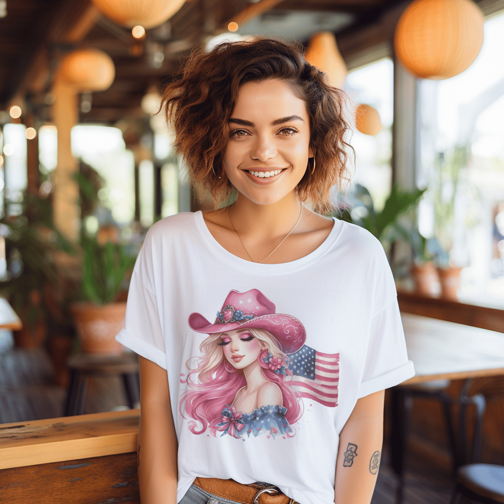 Dolly Pink Cowgirl Blonde Country 4th of July Flag TShirt