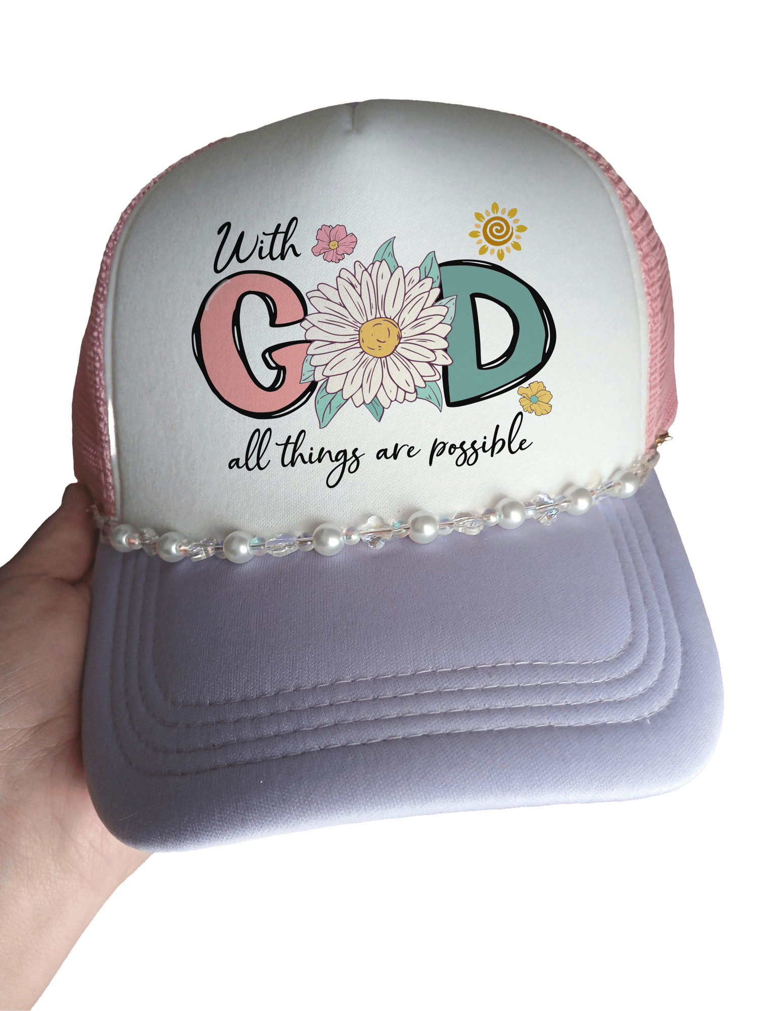 We create unique graphic aesthetic hats and offer various chain options that feature combinations of glass beads, mother of pearl beads, crystal, or rhinestones.
