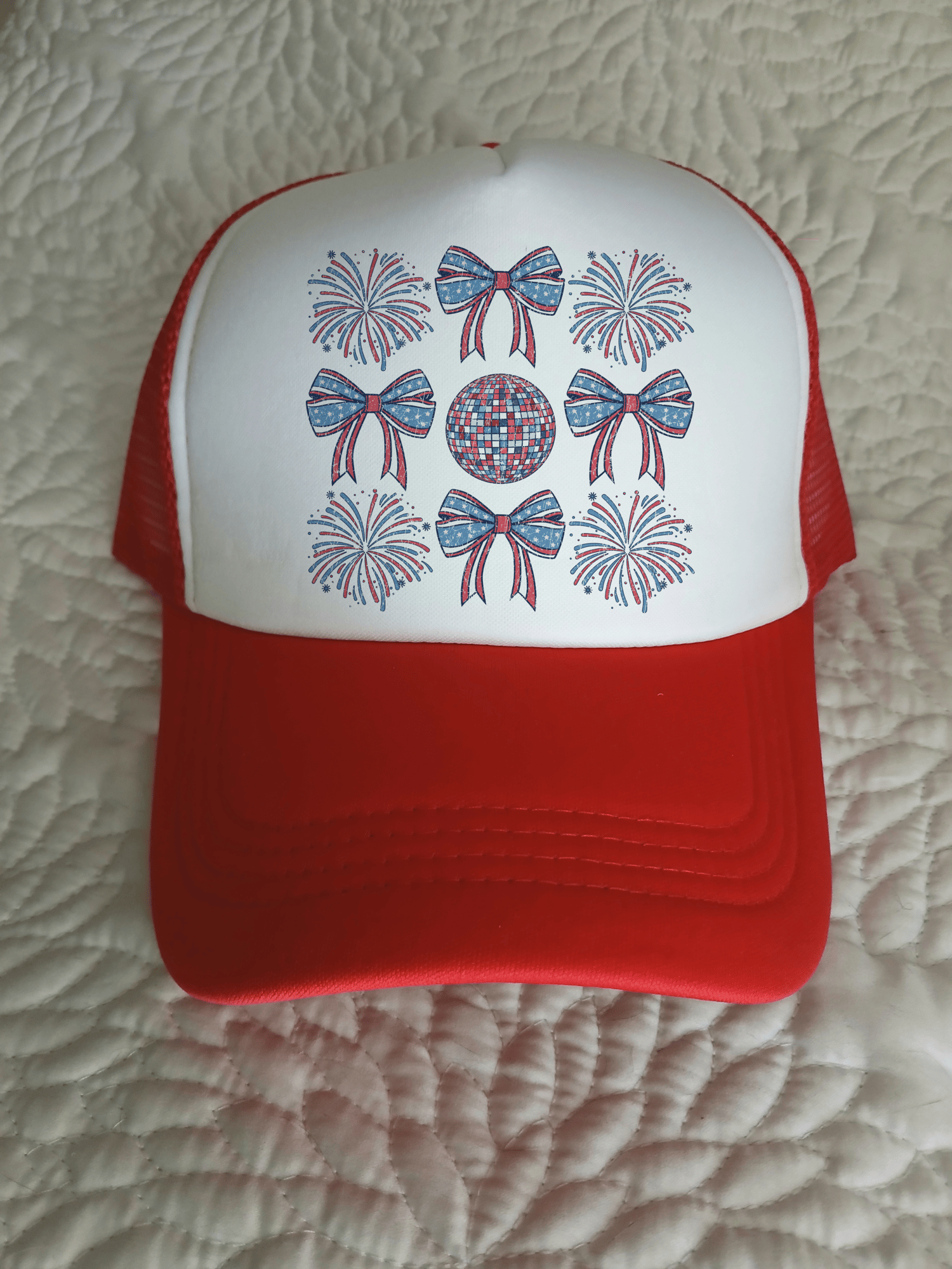 Coquette Disco Retro 4th of July Trucker Hat