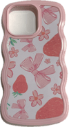 Coquette Strawberry Bow Floral Wavy Phone Case