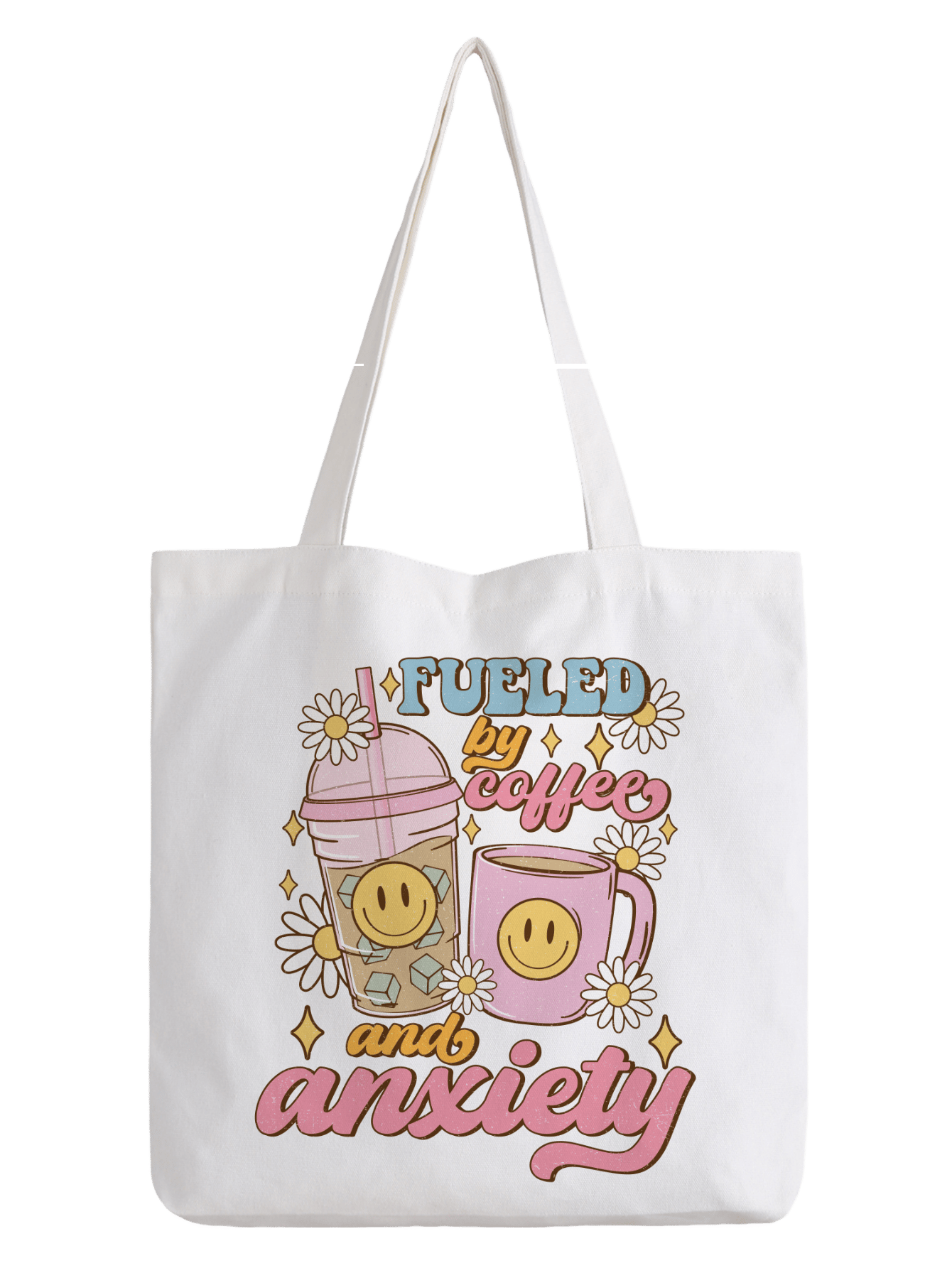 We create unique graphic aesthetic tote bags made from woven poly canvas fabric. Our bags are 13 inch by 13 inch with a standard handle. All bags are designed and shipped from our Denver Metro studio.