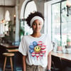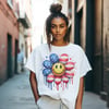 Paint drip smiley face patriotic tshirt for the 4th of July. Price includes shipping in the USA.