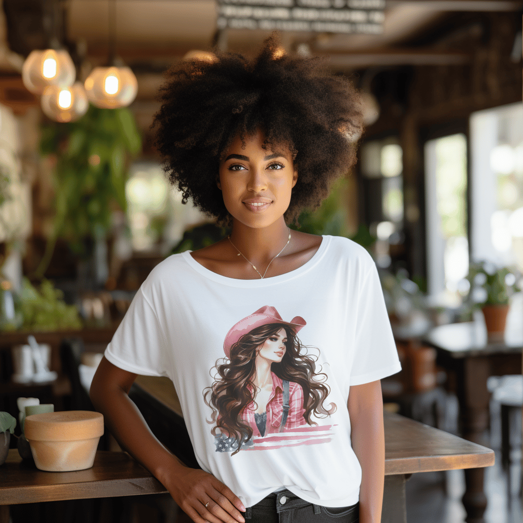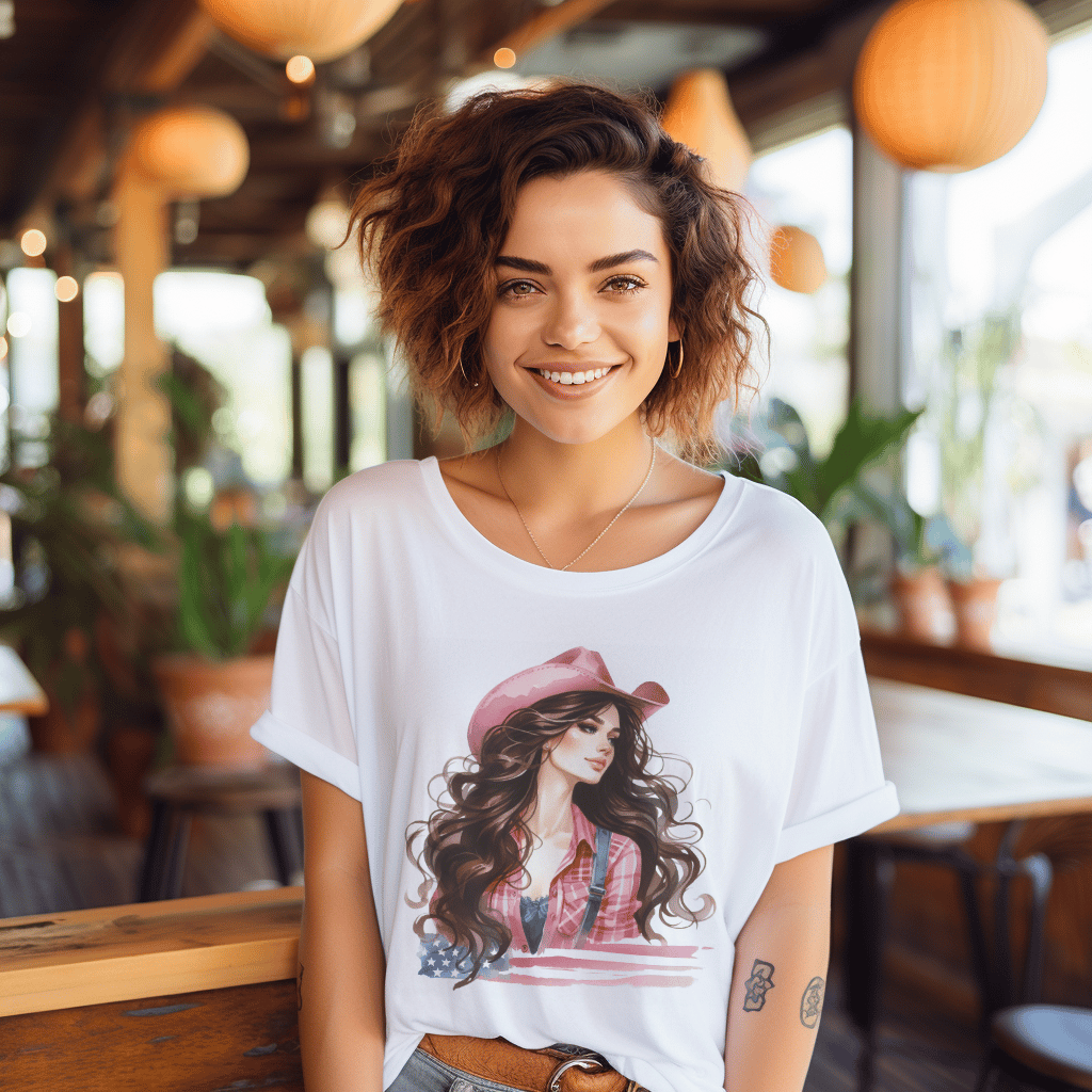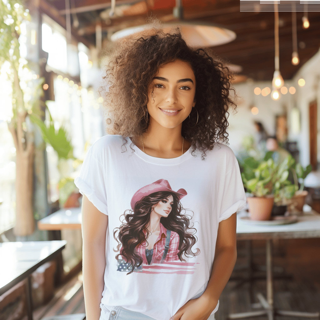 Brunette Cowgirl Country Girl 4th of July Flag TShirt