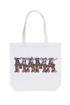 We create unique graphic aesthetic tote bags made from woven poly canvas fabric. Our bags are 13 inch by 13 inch with a standard handle. All bags are designed and shipped from our Denver Metro studio.