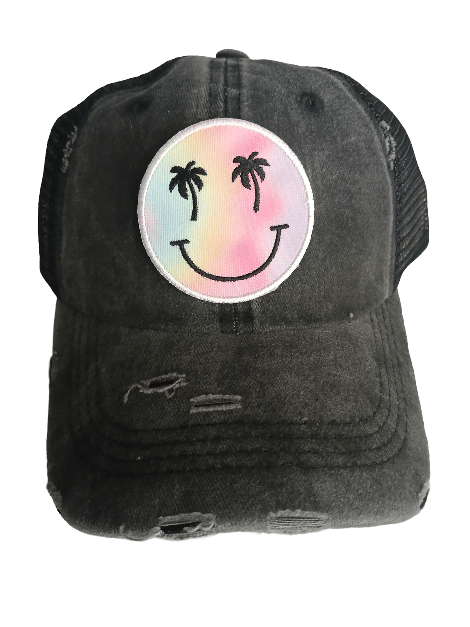 Smiley Flower Retro Distressed Patch Trucker Hat