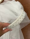 Beautiful rhinestone headband veils are designed and shipped from our Denver Metro studio. This product is rhinestone crystal embellished by hand in our studio and ships in 2-3 business days**