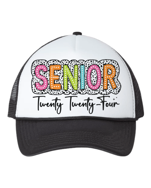 Beautiful festive graduation trucker hats made and shipped from our Denver Metro studio.