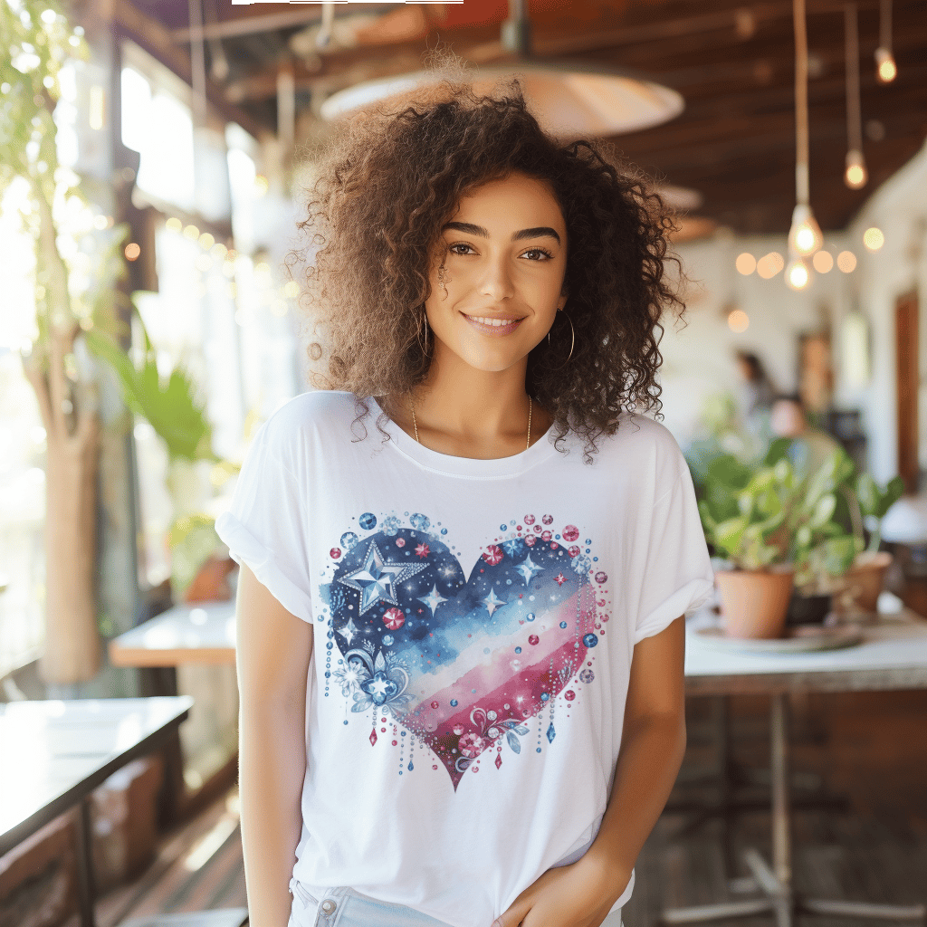 Crystal Heart 4th of Rhinestone Flag TShirt