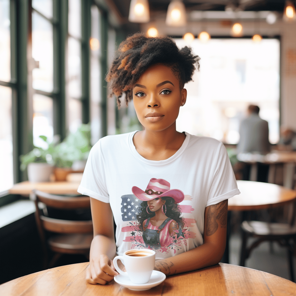 African American Cowgirl Overalls 4th of July Flag TShirt